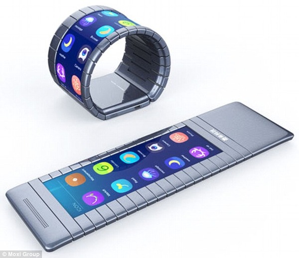 Also be used as an ordinary plate-like smartphone, it can also be wound in the arm.