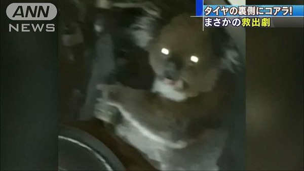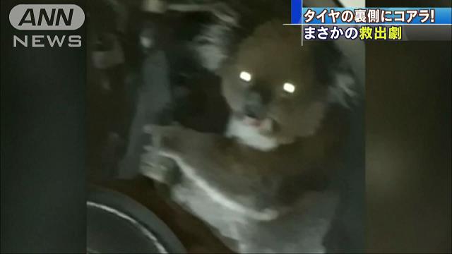 This koala, being trapped by the axle on the back of the tire, was rescued after running a distance of 16 kilometers.